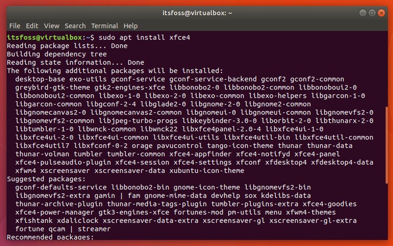 Ini akan mengubah rasa Ubuntu Anda menjadi Xubuntu. Jadi, mana yang harus Anda gunakan? xfce4 atau xubuntu-desktop? Jawabannya tergantung kebutuhan Anda. Jika Anda hanya ingin merasakan desktop Xfce dan tidak peduli dengan pengalaman estetika dengan Xfce, Anda dapat menggunakan xfce4. Tetapi jika Anda ingin pengalaman desktop Xubuntu lengkap seolah-olah Anda menggunakan Xubuntu sendiri, gunakan xubuntu-desktop. Anda juga dapat menghapus semua jejak Unity untuk mengonversi instalasi Ubuntu Anda ke Xubuntu.