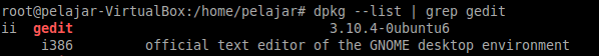 abis itu kita cek menggunakan command “dpkg –list | grep gedit” untuk mengecek apakah si gedit yang kita install tadi udah keinstall apa belom