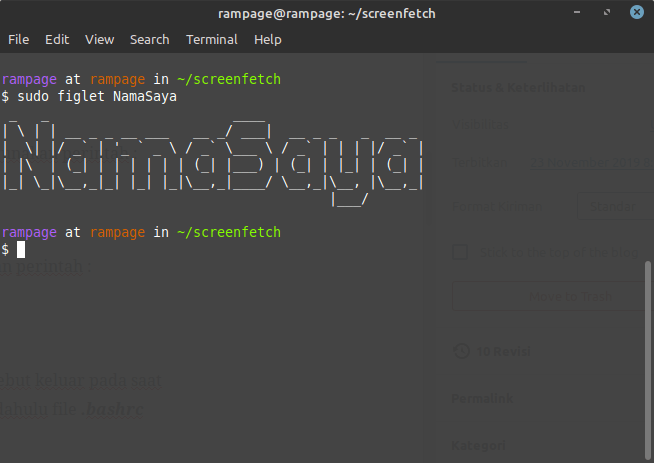 Yang pertama mengunakan FIGLET, intall figet mengunakan perintah :