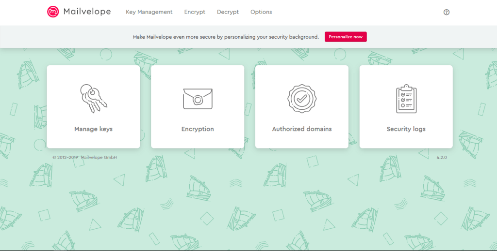Mailvelope adalah perangkat lunak gratis untuk enkripsi lalu lintas email end-to-end di dalam browser web (Firefox atau Chromium) yang mengintegrasikan dirinya ke dalam aplikasi webmail yang ada (“situs web email”). Ini dapat digunakan untuk mengenkripsi dan menandatangani pesan elektronik, termasuk file yang dilampirkan, tanpa menggunakan klien email asli yang terpisah (seperti Thunderbird) menggunakan standar OpenPGP.