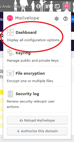 2. Buka Mailvelope pada icon pojok atas browser masuk dashboard.