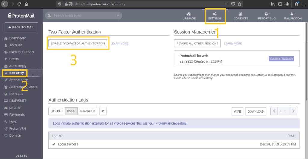 #7. Nah, sekarang protonmail anda sudah mengaktifkan 2FA.